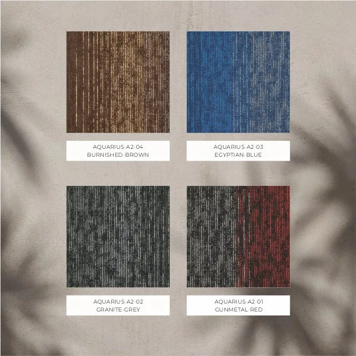 Didesain khusus untuk mencocokkan kebutuhan lingkungan kantor premium, Aquarius memberikan sentuhan modern dan eksklusif. Karpet ini bukan hanya elemen dekoratif, tetapi juga menciptakan suasana kerja yang mewah dan penuh gaya. - Desain yang Fleksibel
