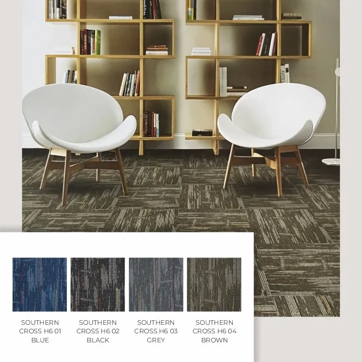 Didesain khusus untuk mencocokkan kebutuhan lingkungan kantor yang berkelas, Karpet Southern Cross memberikan kesan profesional dan modern. Karpet ini bukan hanya elemen dekoratif, tetapi juga menciptakan suasana kerja yang eksklusif dan berkelas. - Desain yang Fleksibel