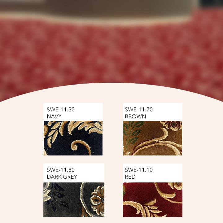 Karpet Sweden dengan motif Batik dan Bunga menghadirkan suasana elegan serta berkelas di hotel Anda. Lebar 4 meter dan material heavy duty memastikan kenyamanan, estetika, serta ketahanan optimal di area lobi, koridor, dan ruang pertemuan.