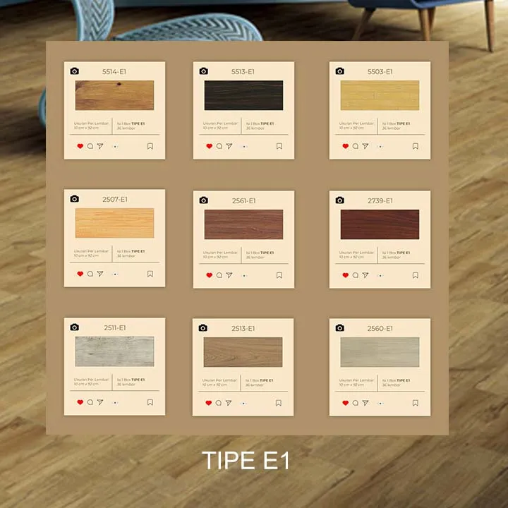 Vinyl LG Decotile hadir dengan beragam pilihan motif kayu yang menawan, mulai dari kayu yang terang hingga yang lebih gelap, serta tekstur yang menggambarkan serat kayu alami dengan detail yang luar biasa. Setiap vinyl diproduksi dengan presisi tinggi, menciptakan tampilan yang autentik dan indah di setiap ruangan. Desain ini tidak hanya memberikan kesan alami, tetapi juga menambah sentuhan elegan dan hangat pada interior.